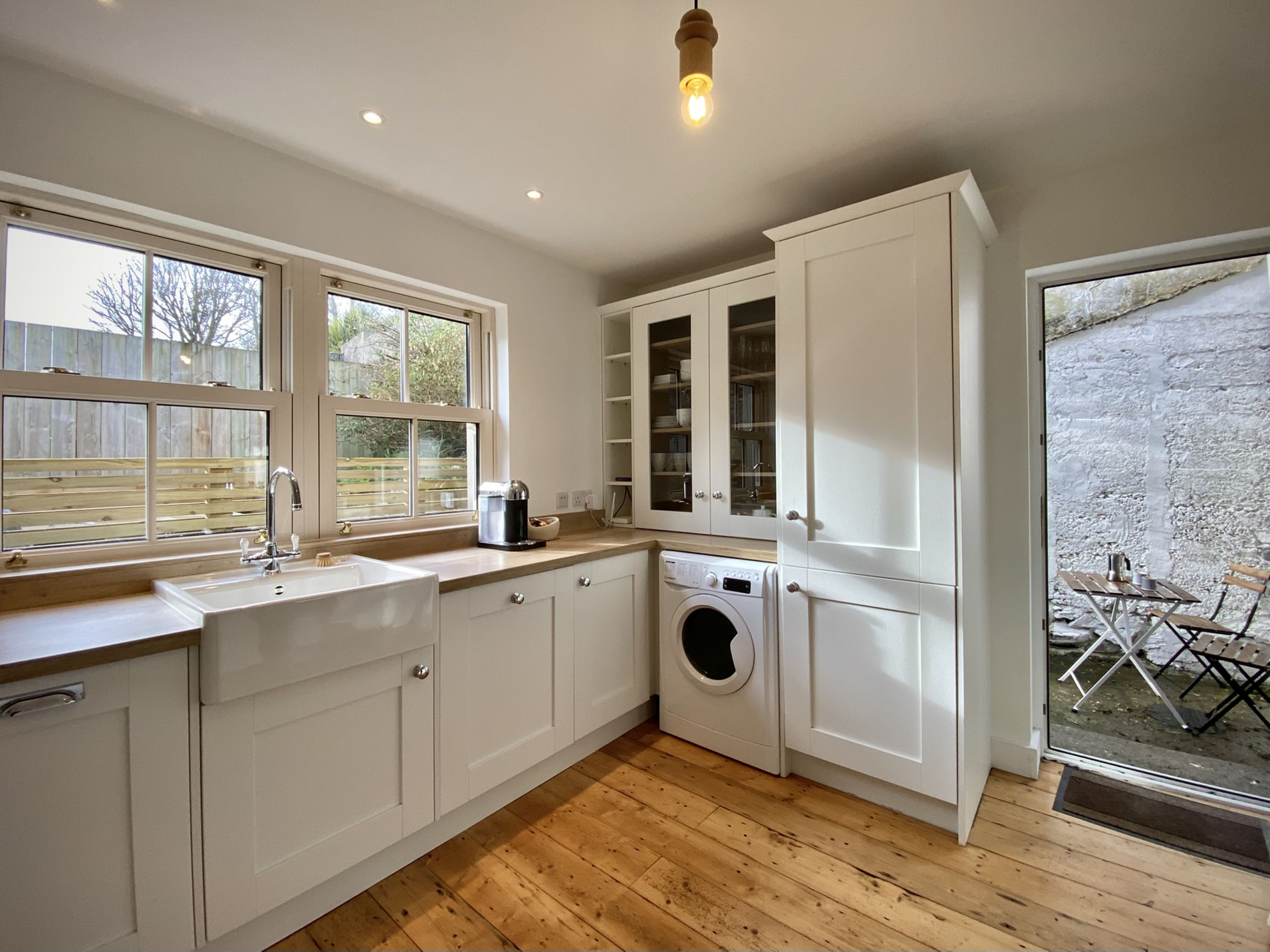 - Modern and fully equipped kitchen with access to an outside patio area