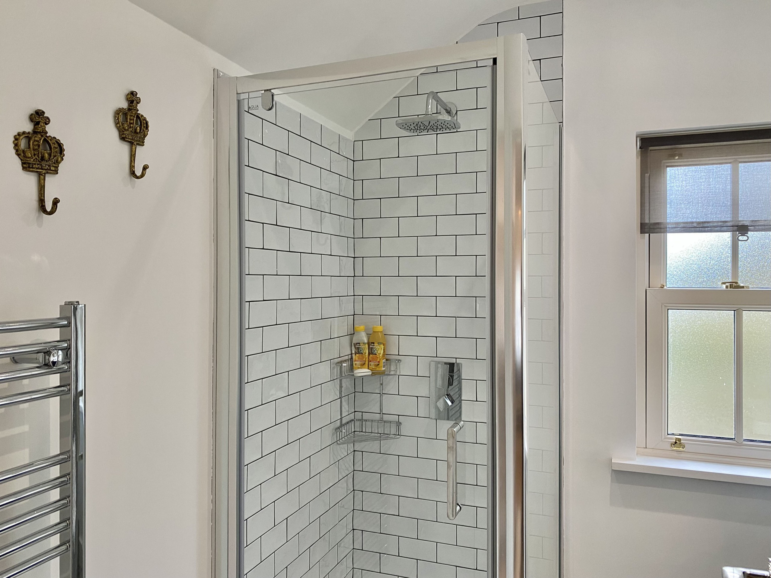 - Family bathroom with large shower with rainfall shower head sink and WC