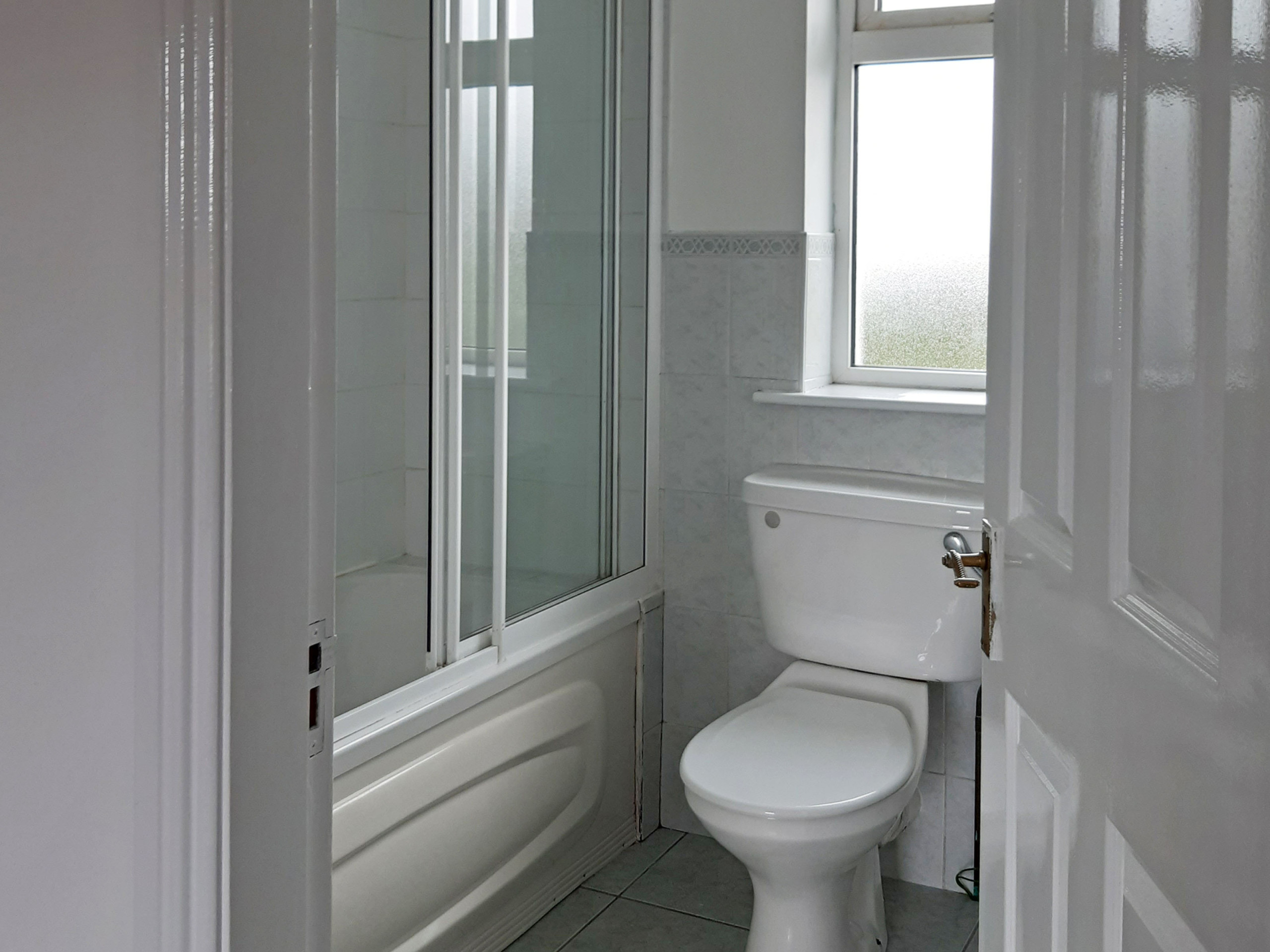 - Family bathroom with WC, hand basin, and bath with overhead shower