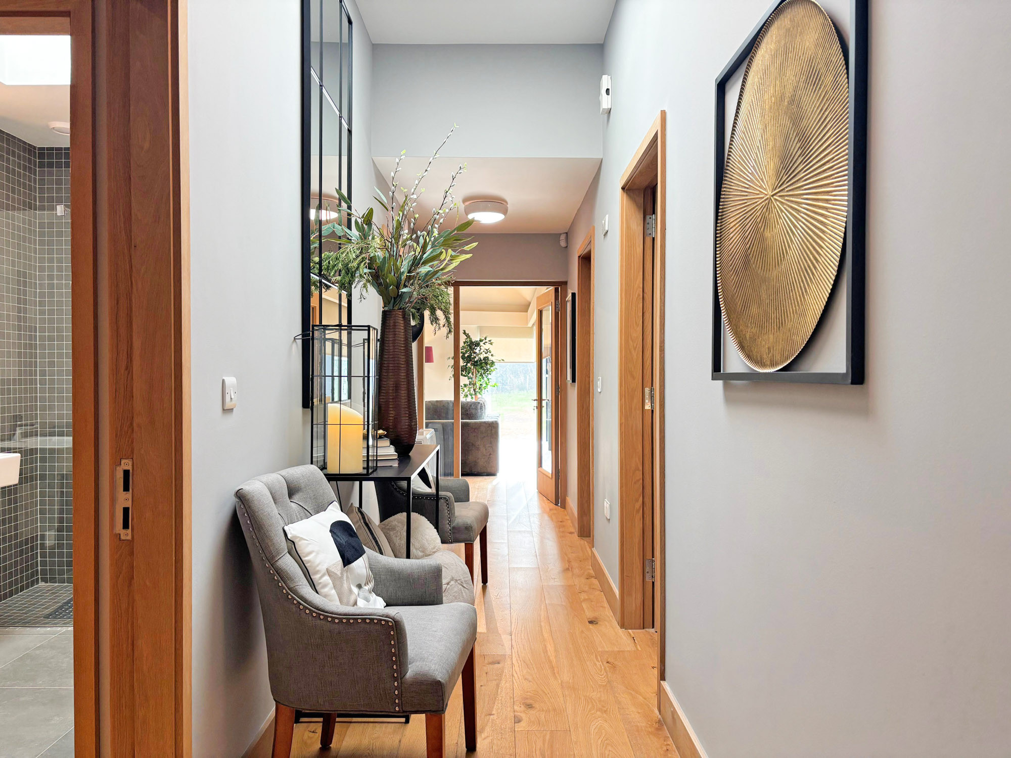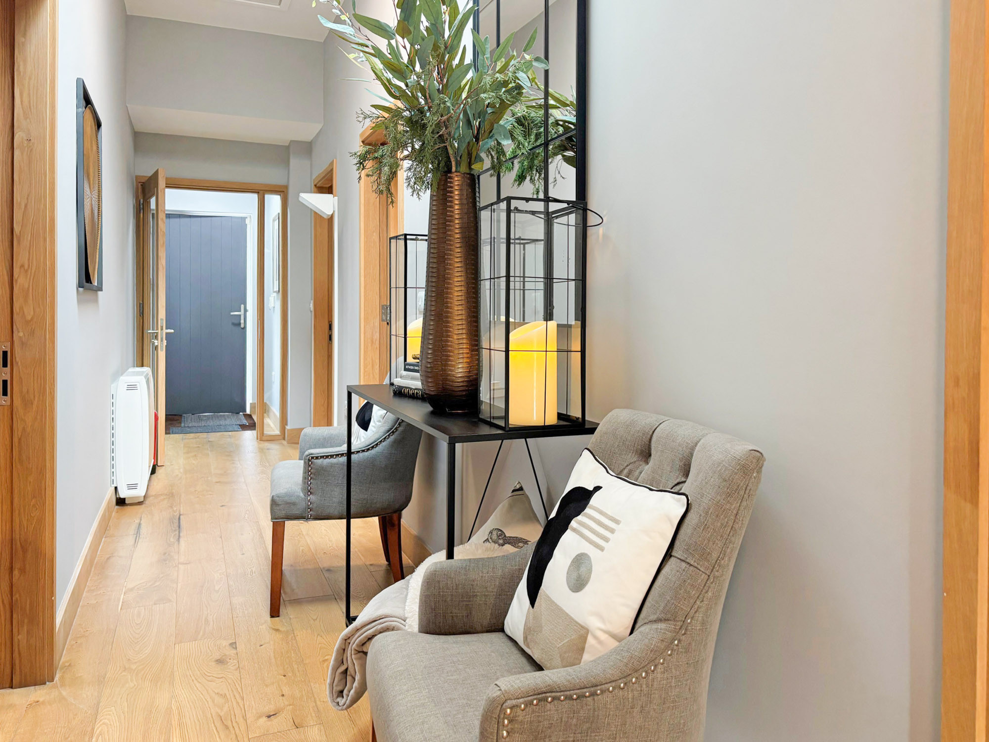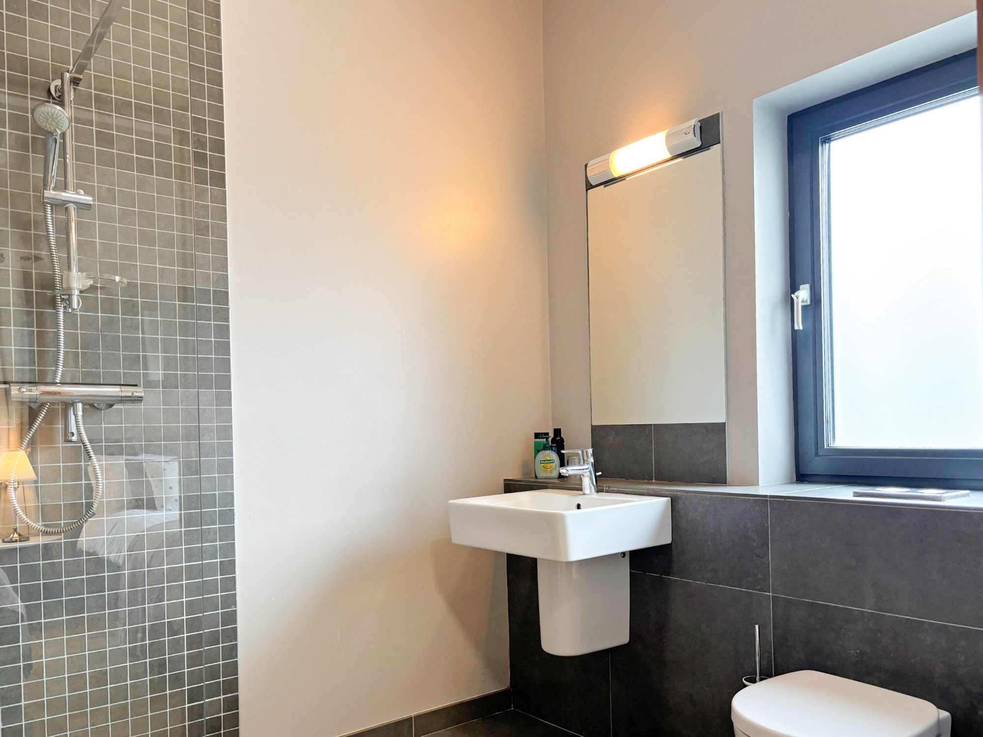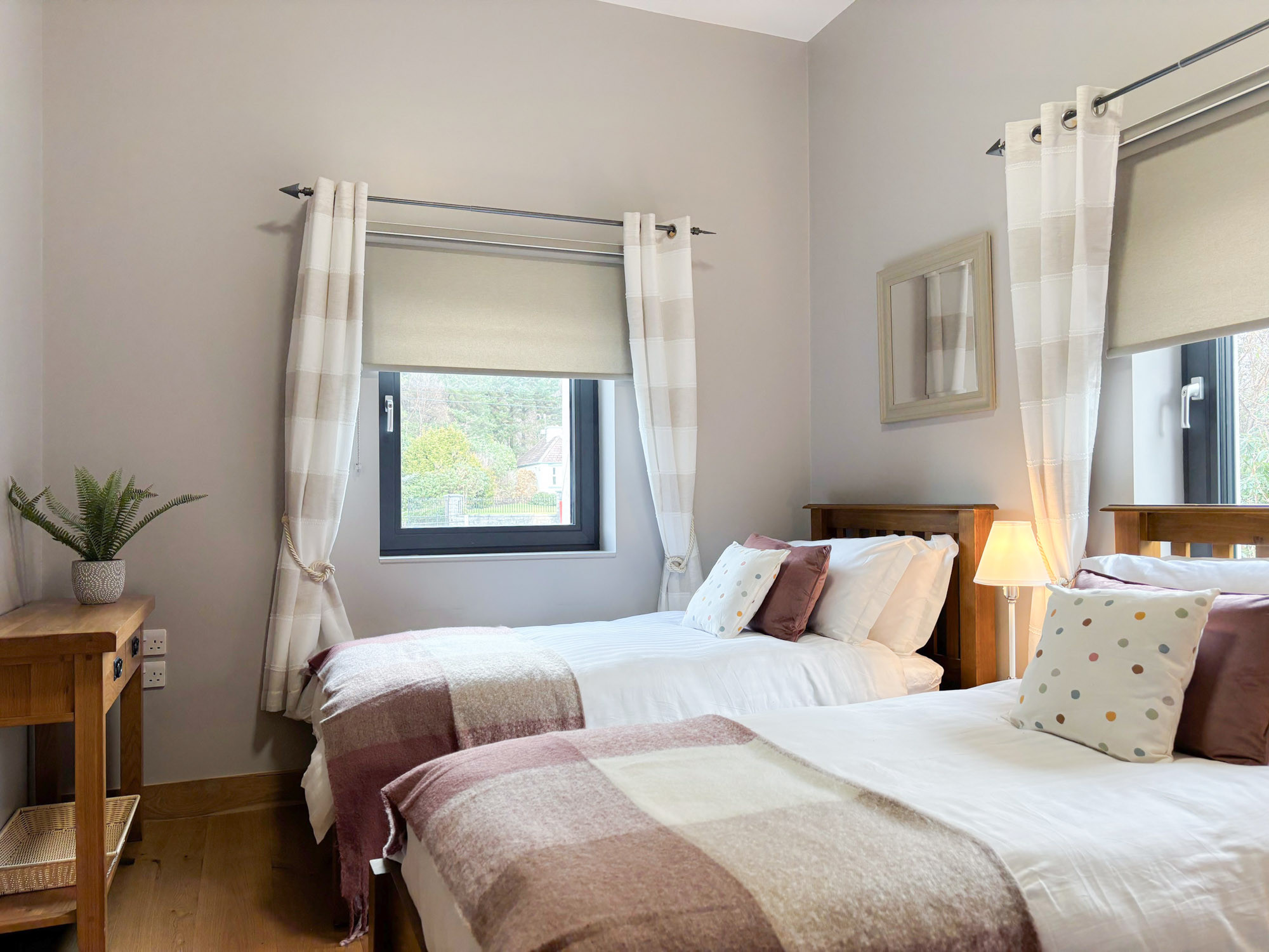 - Bedroom 1: Triple room with three single beds and en-suite (wet room shower, WC and hand basin), sleeping 3