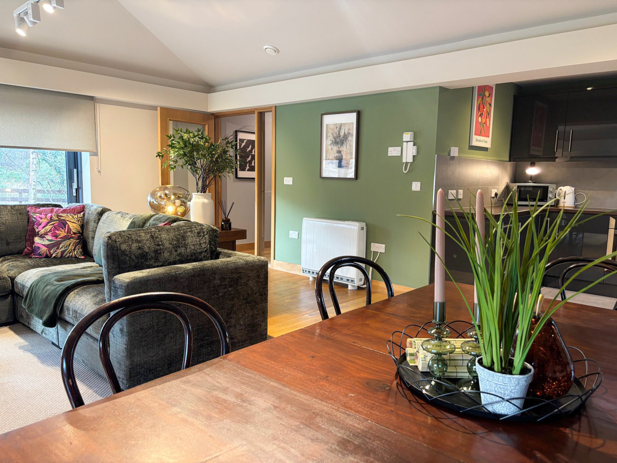 - Fully fitted kitchen with electric oven, hob, microwave, dishwasher, kettle, toaster, coffee maker and fridge