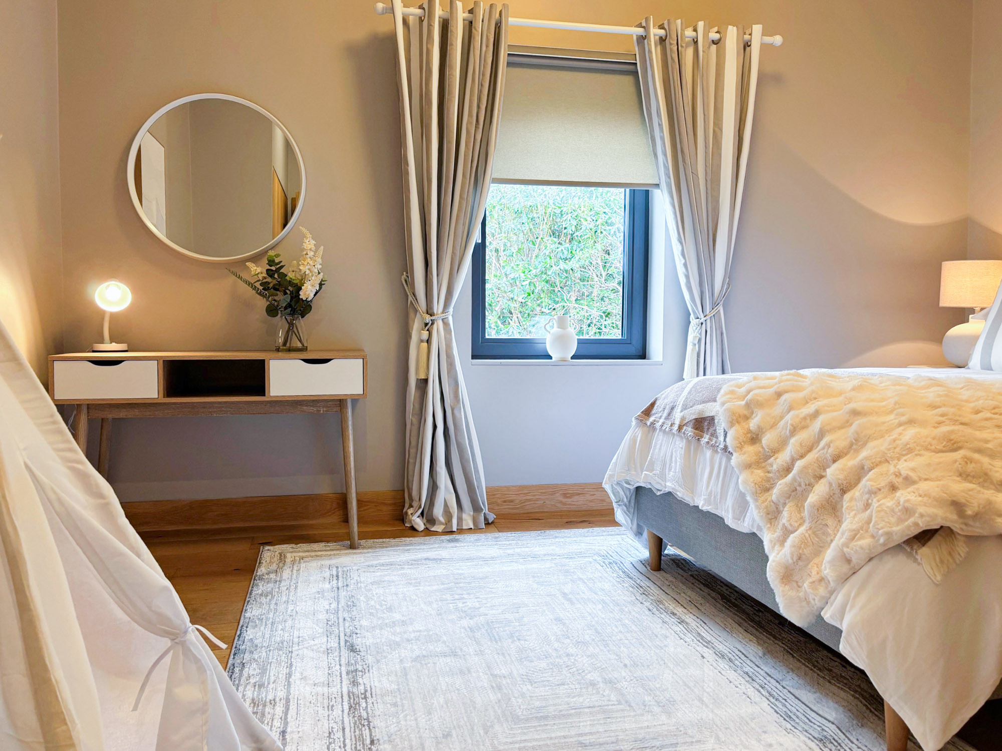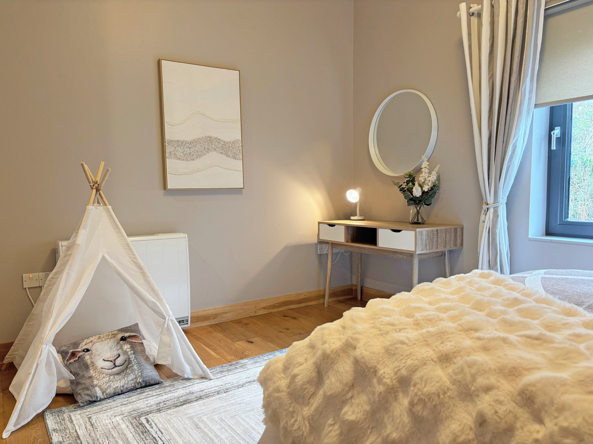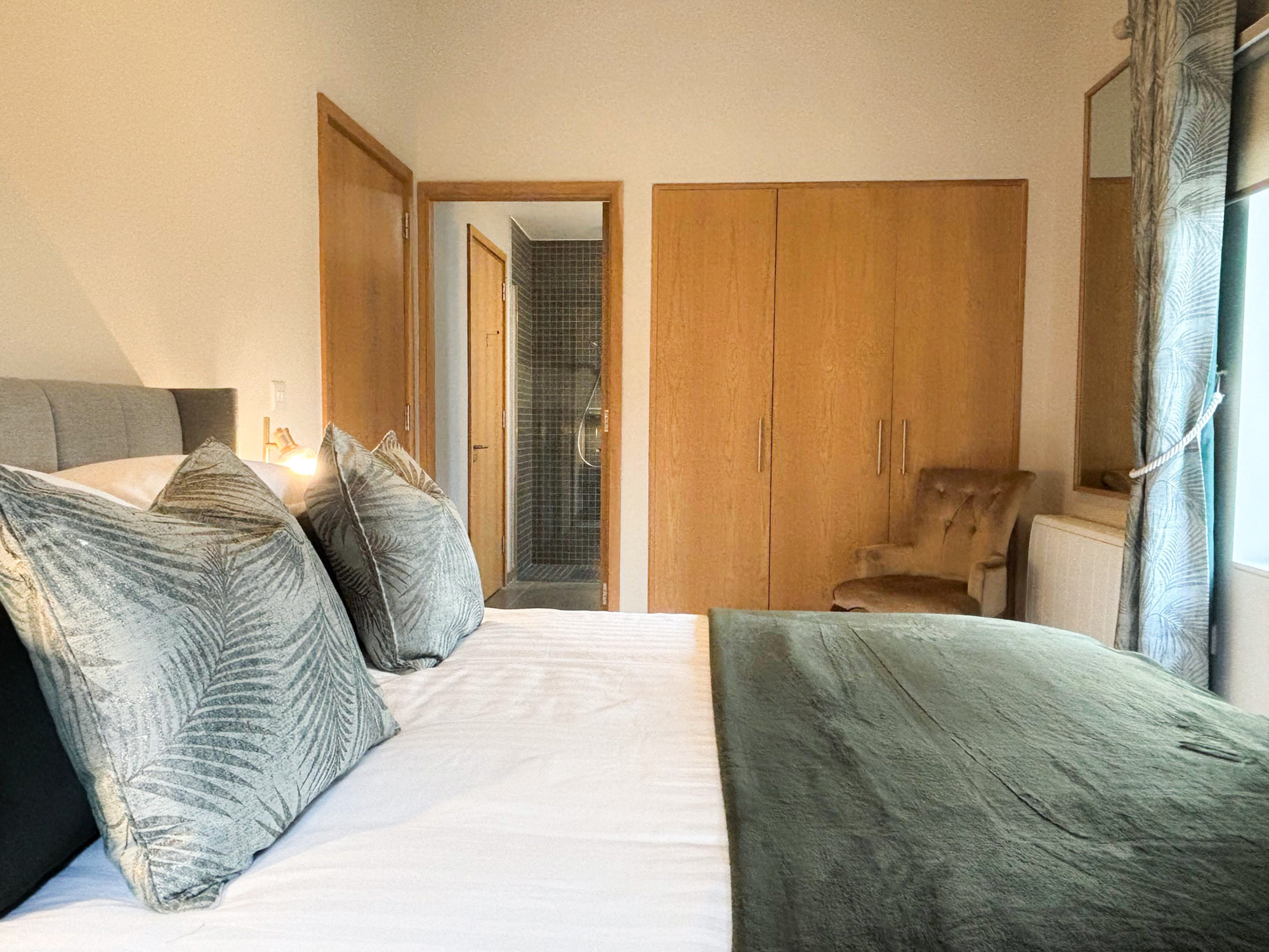 - Bedroom 3: King-size bedroom with access to Jack and Jill bathroom (wet room shower, WC and hand basin), sleeping 2