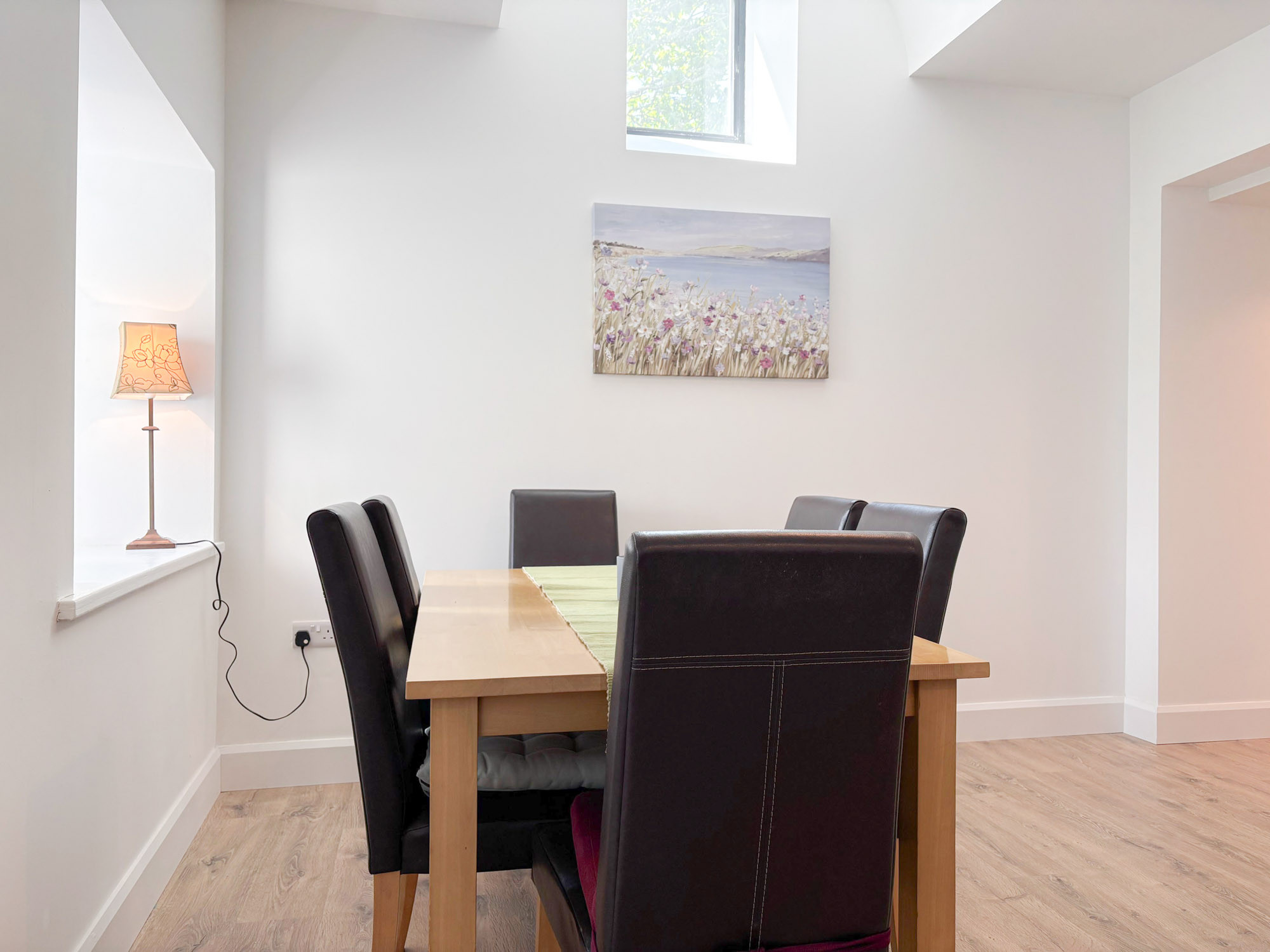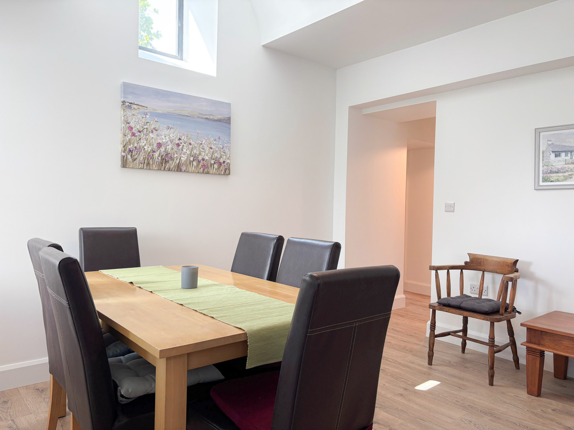- Dining area with table and seating for 6