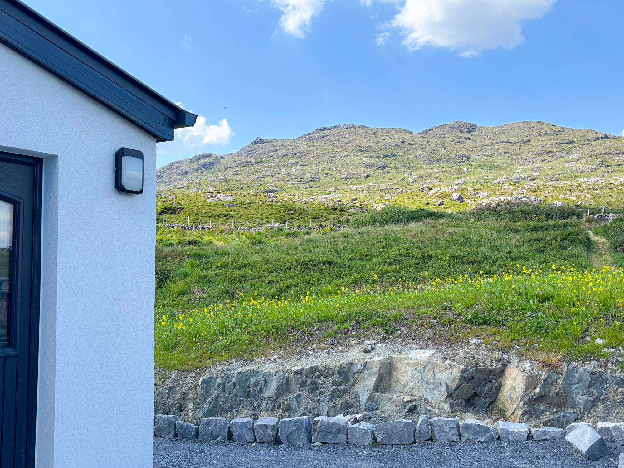The cottage enjoys views of Errisbeg Hill and is within easy reach of Roundstone village, which offers shops, pubs and restaurants. The surrounding area provides access to walking routes including the Inishnee Island loop and the Connemara Greenway at Ballynahinch, as well as coastal drives along the Wild Atlantic Way.